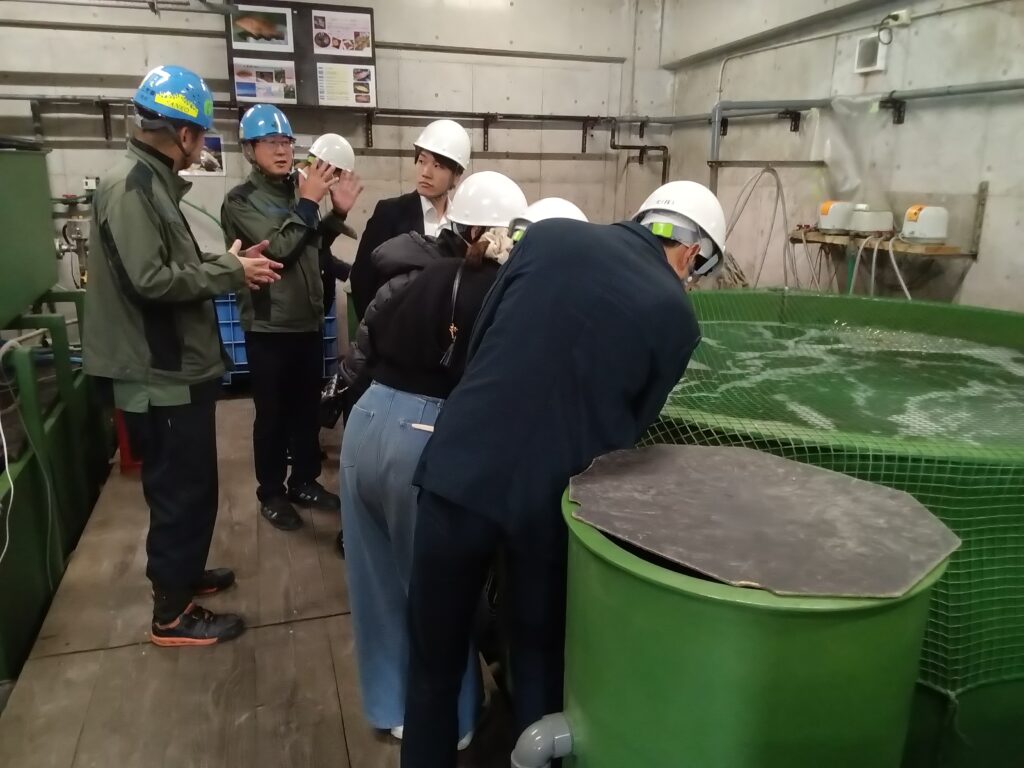 続いてご案内したのは、弊社が取り組んでいる陸上養殖場。ここでは、キジハタや海ぷちを育てています。