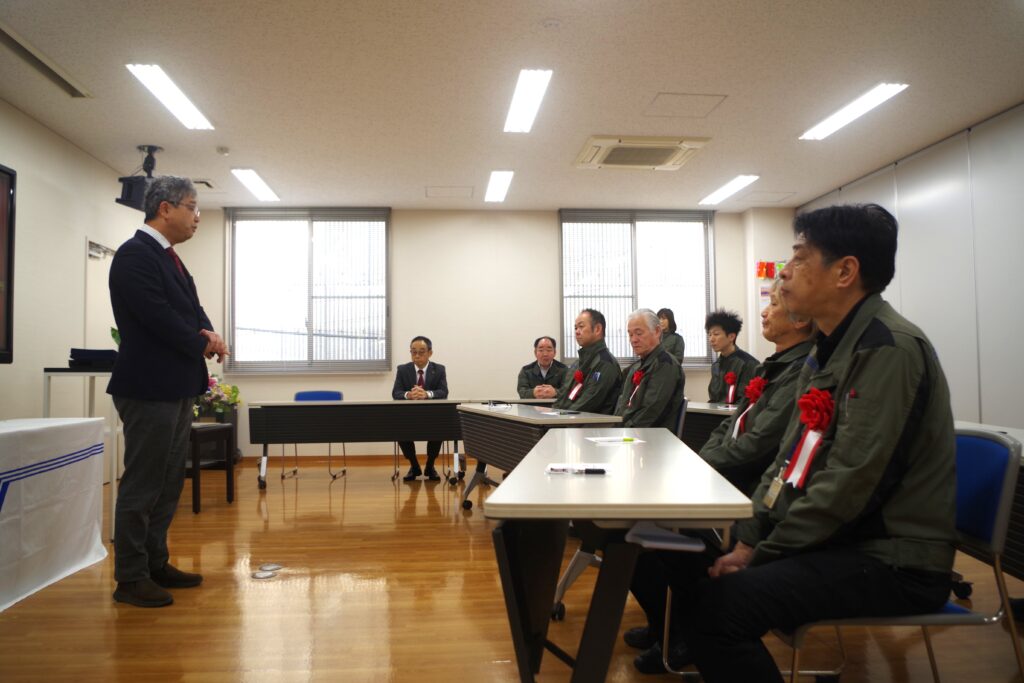 式の中では、弊社代表取締役社長 三輪より、長年の勤務への感謝と、今後のさらなる活躍および後進育成への期待を込めた挨拶が述べられました。