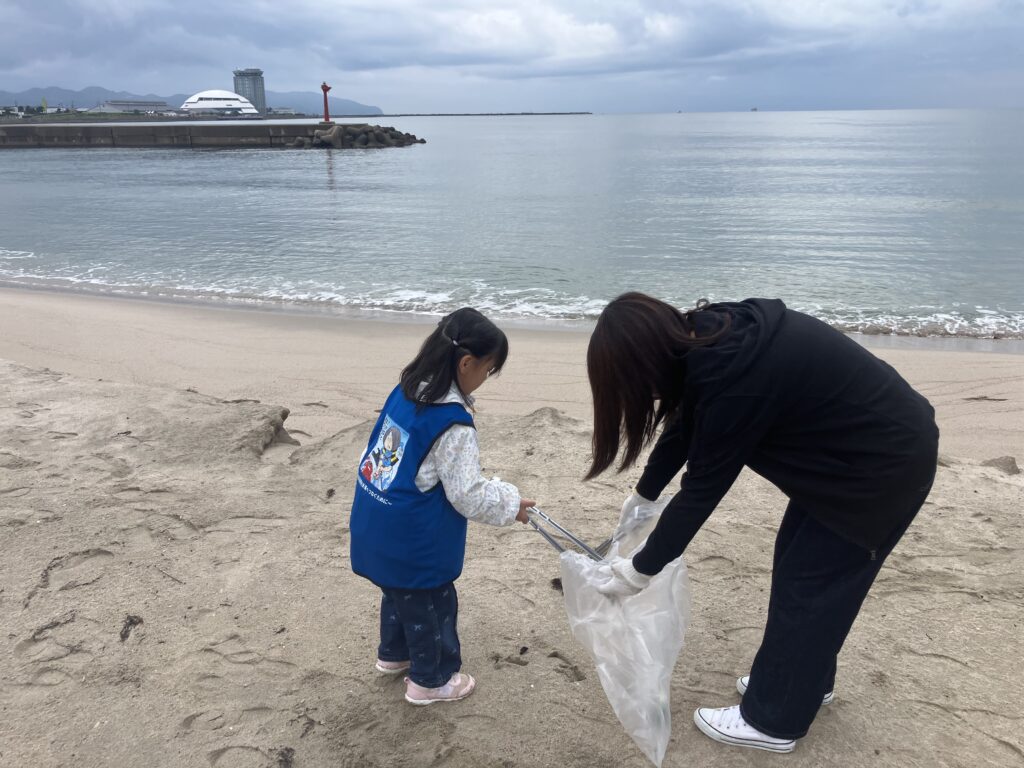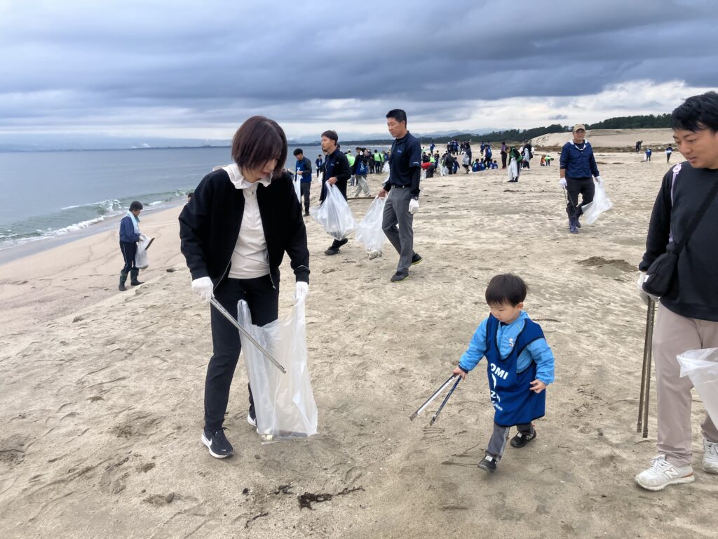 本活動は、境港市から米子市にかけて続く弓ヶ浜海岸を清掃し、美しい景観を未来へつなぐことを目的としています。当日は弊社社員とそのご家族が参加し、約1時間にわたり海浜の清掃活動に取り組みました。