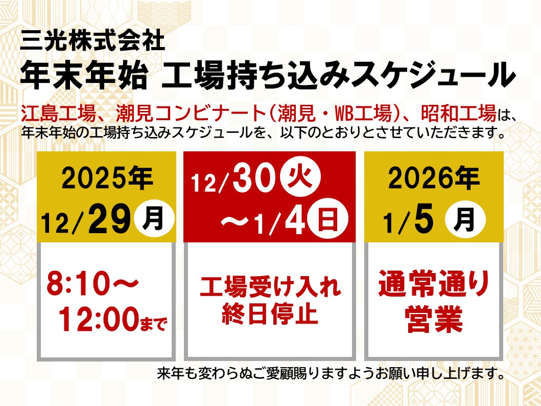 - 年末年始 工場持ち込みスケジュールお知らせ 2025年11月17日