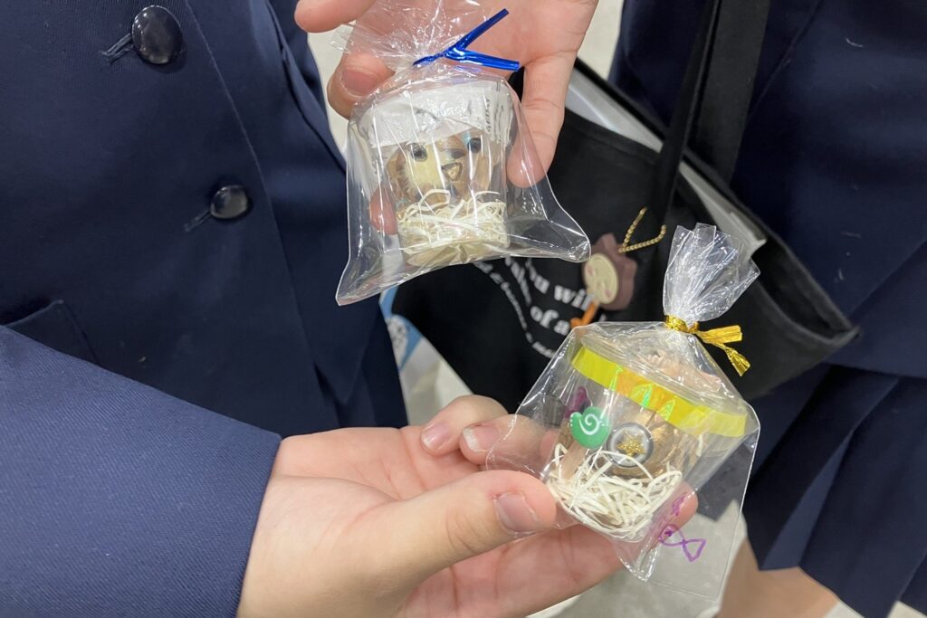 三光ブースには昨年より60名多い約160名の生徒のみなさんが訪問。廃棄物の分別を学ぶ「産廃カードゲーム」と、江島工場で製造しているリサイクル燃料をテーマにした「映えるRPFづくり」を体験してもらいました。「どっちの処分場だろう?」「押し色で作ろう!」「どんなデコレーションをしようかな」など、楽しみながら学ぶ声があちこちで聞こえ、笑顔があふれる体験の時間となりました。