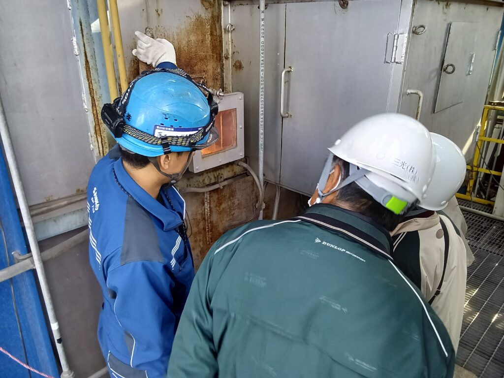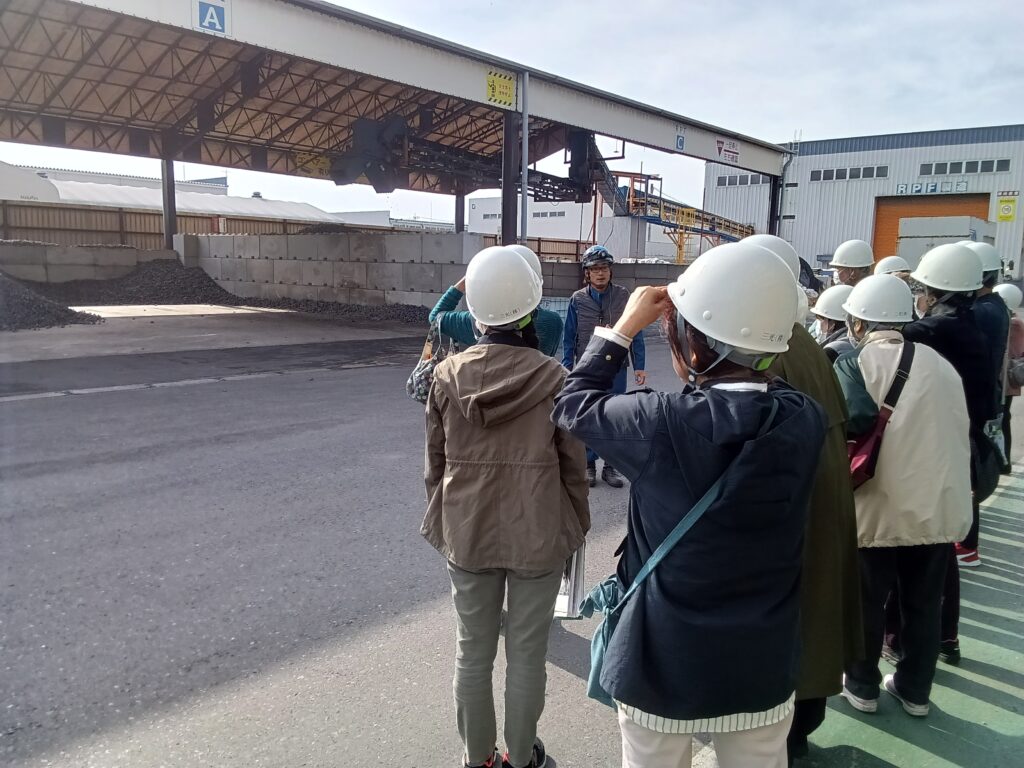 まずは、廃プラスチック類などをRPF(固形燃料)にする処理工程を見学。続いて、焼却炉や処理設備を間近でご覧いただきました。「20年ぶりに来たけど、構内がとてもきれいですね」「自分たちが出したごみが、リサイクル製品になって使用してもらえていると知れて嬉しい!」そんな声をいただき、我々も思わず笑顔になりました。