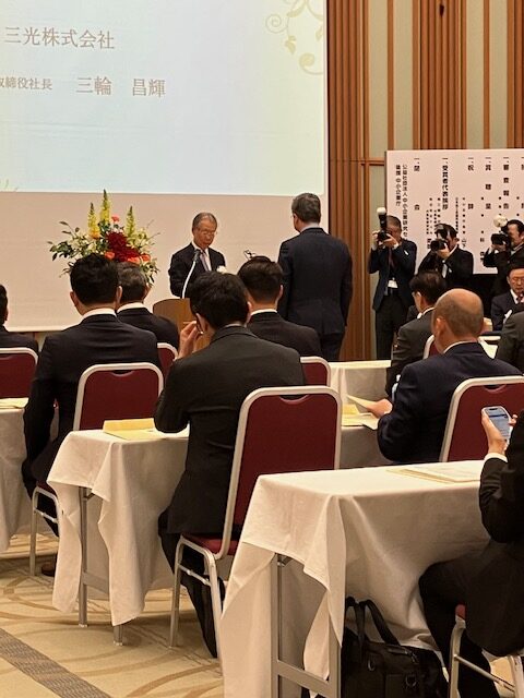 表彰式には、創業者である三輪博美と、2代目である三光ホールディングス代表取締役CEO 三輪陽通、そして3代目である現社長の三輪昌輝が参列し、現社長三輪が表彰状を受け取りました。