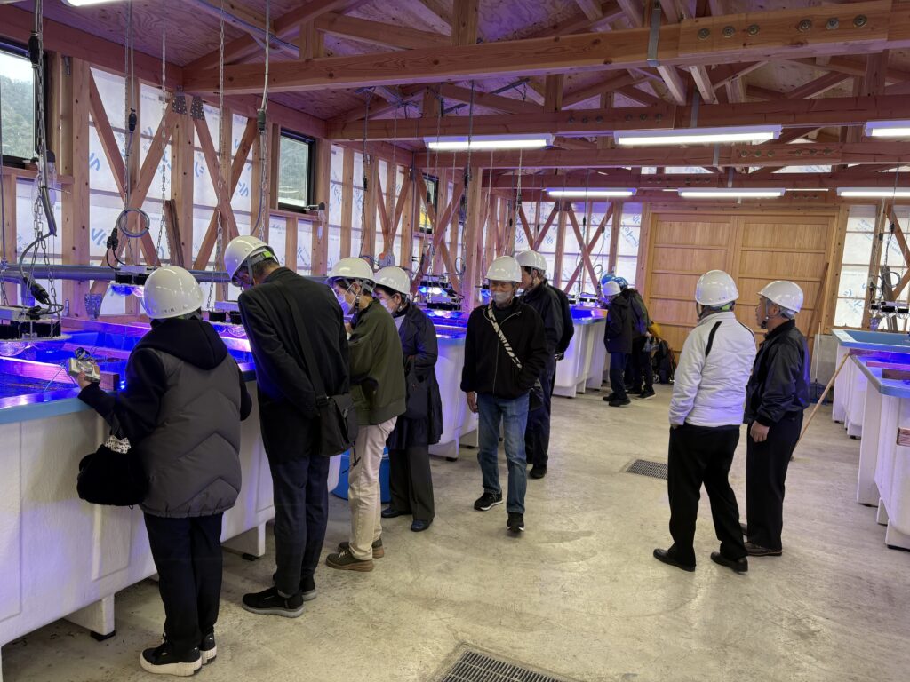 さらに、場内に隣接する陸上養殖場では、海ぷち(フサイワヅタ)や、バナメイエビの水槽をご覧いただきました。今後新たに挑戦予定の取り組みについてもお話をして、養殖事業を含めた弊社の幅広い取り組みについて知っていただく機会となりました。